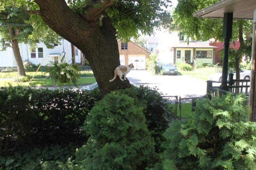 Perched, distracted by a bird