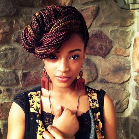 Nigerian mulit-colored braids. Love this! Duafe earrings… nice.