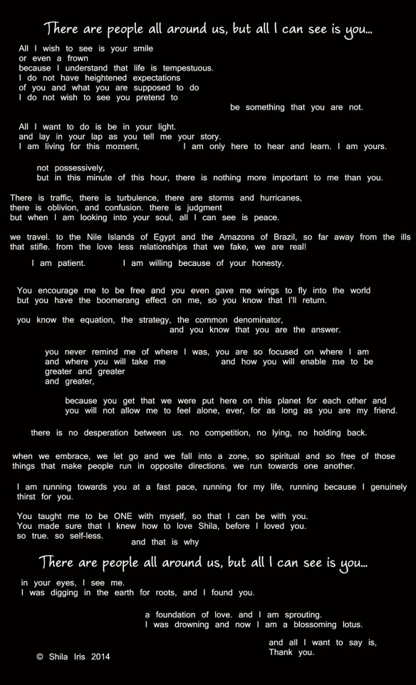 2 thoughts on “There are people all around us, but all I can see is you…