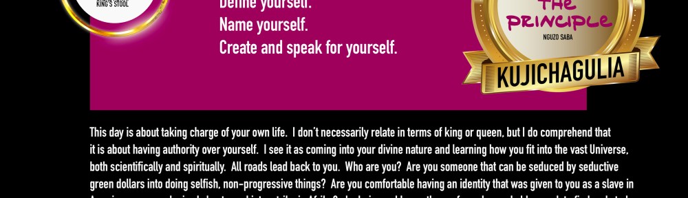 I love to say kujichagulia (koo-jee-chah-goo-lee-yuh). ♥ ♥ It rolls off my tongue very nicely. So, here I am, Shila Iris, hey ya’ll!!!! You know I rocks with Kwanzaa on this blog. Check it out.